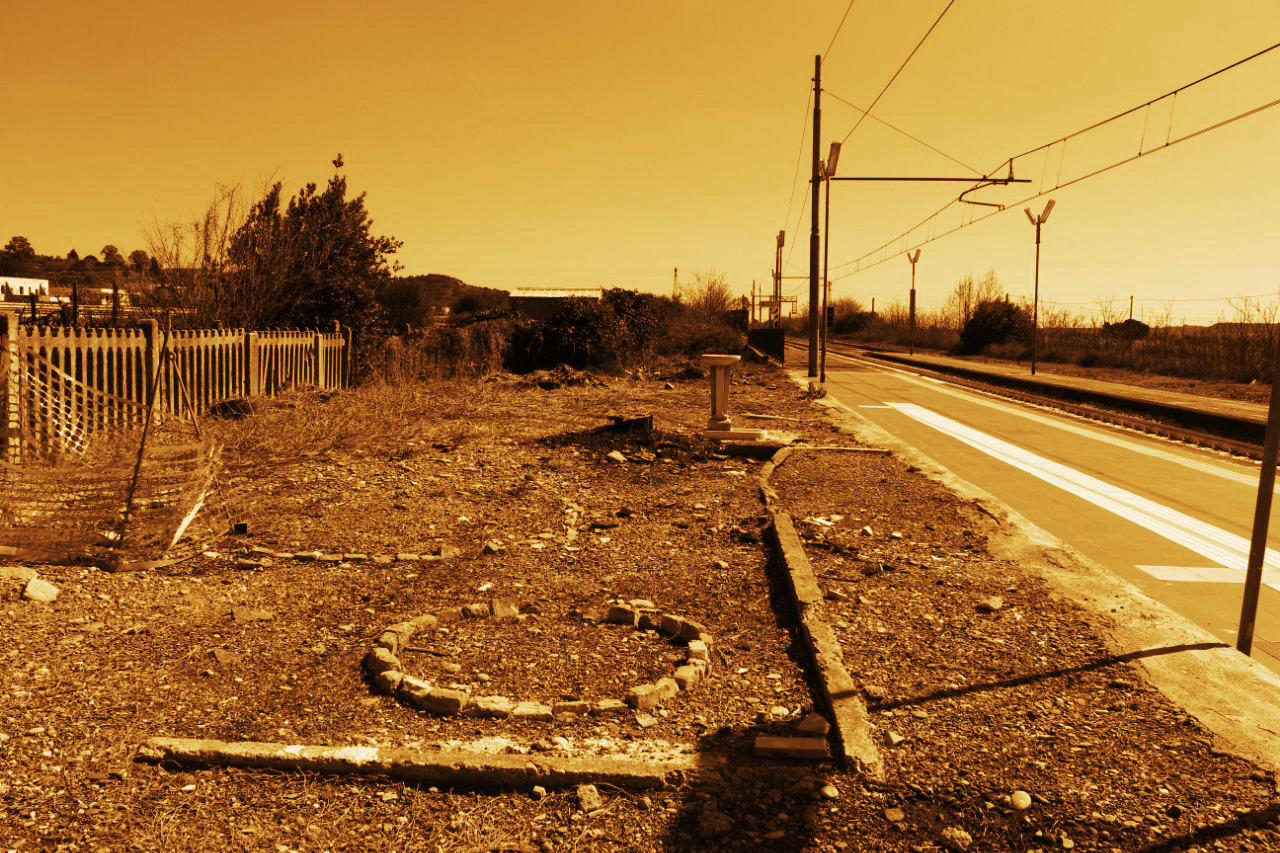 Nel vento che graffia la sera, il campo di spighe sussurra: “Vai, Spaventatore, raccogli ciò che matura dove il sole non guarda.” Le piante si piegano, indicano una direzione, quella del verme di ferro sotto il cielo di piombo, con tanti rettangoli di luce stagliati sul crepuscolo – il regionale veloce, ovviamente immobile, sembra un insulto al buonsenso.